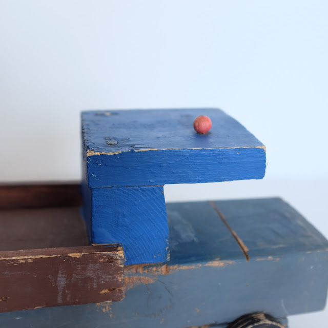 木製の車輪やマイナスネジの使われた古手のトラック。