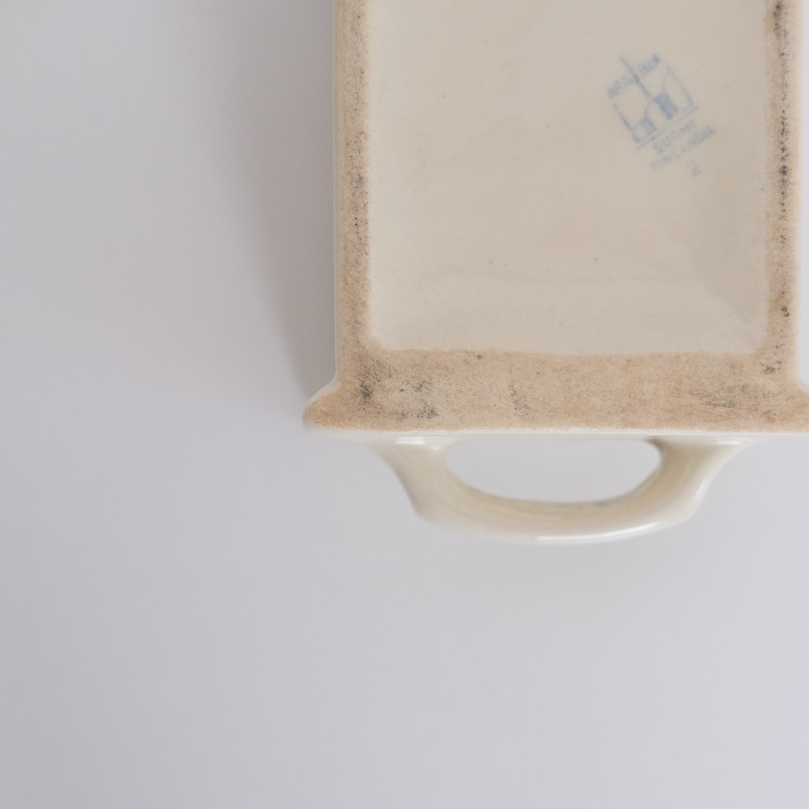 画像のように製造時からの元々の歪み、汚れ、釉薬のムラ、擦れ傷や小傷などございます。
