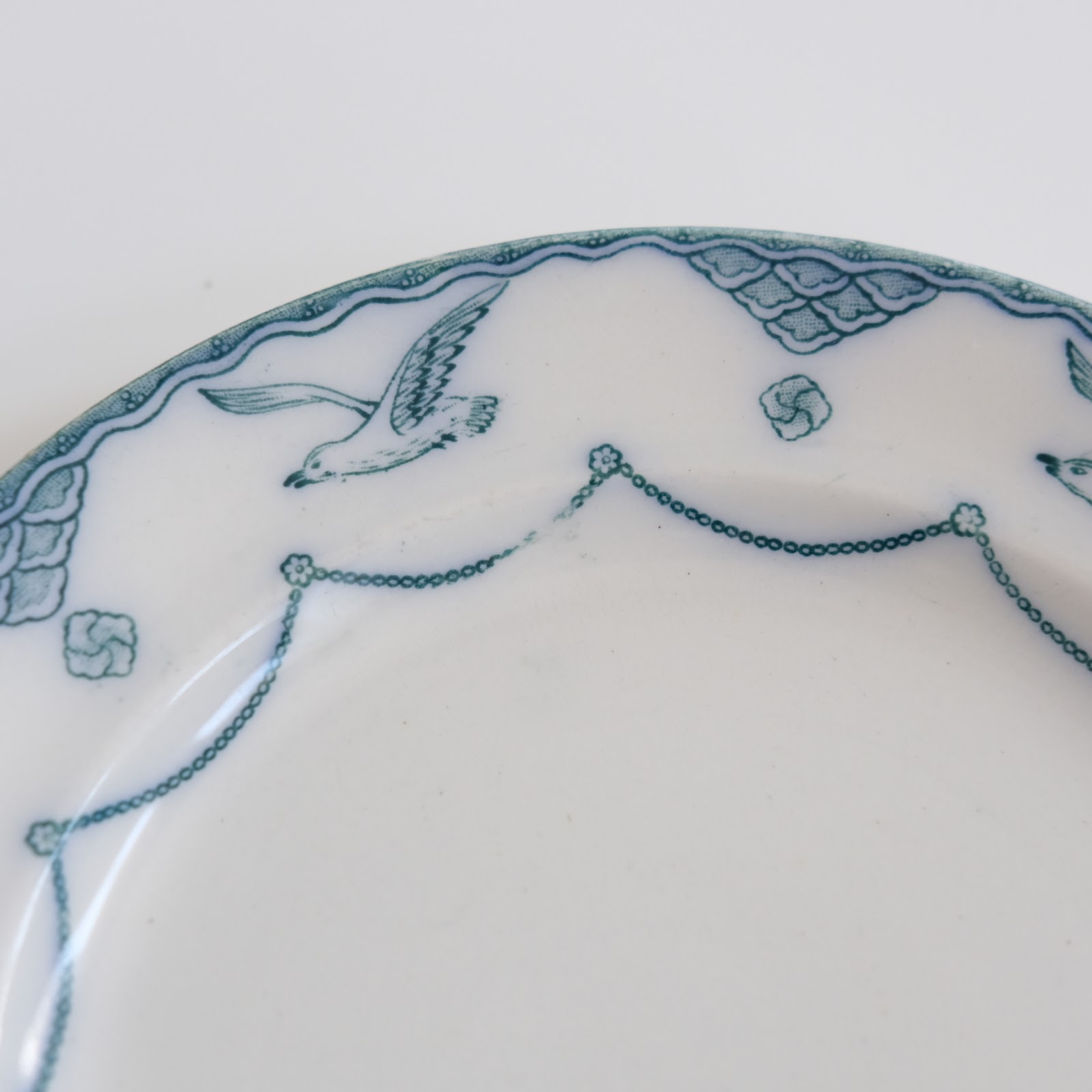 およど100年近く前のアンティークですので、画像のように製造時の絵柄のムラや滲み、絵柄の掠れ、カトラリー傷、擦れ傷や小傷、製造時の目跡、釉薬のムラ、シミや汚れなどございます。