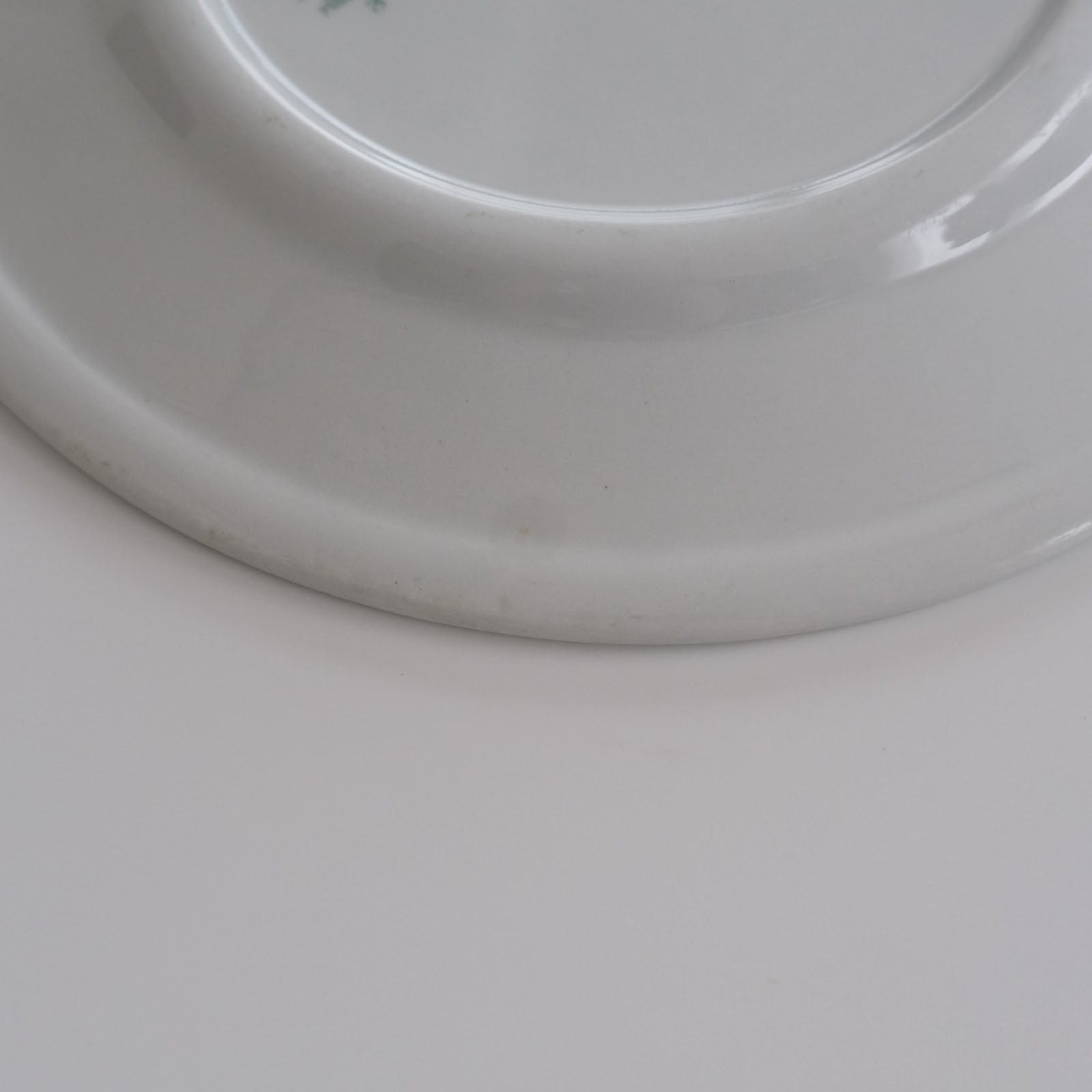 使い込まれた質感ですので、画像のようにカトラリーなどの傷、製造時の目跡、釉薬のムラ、シミや汚れ、文字の掠れ、擦れ傷や小傷がございます。