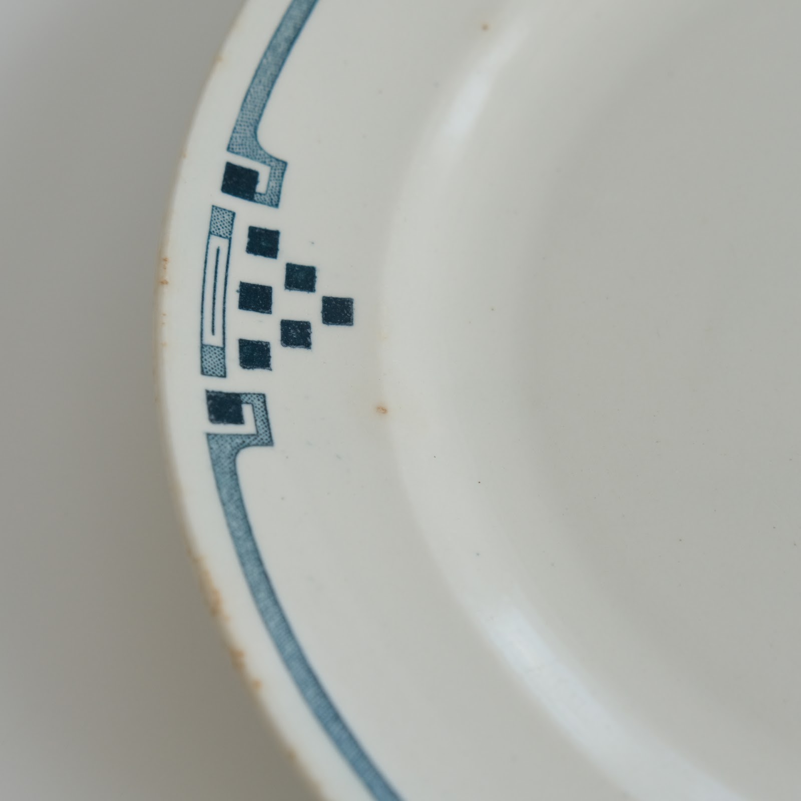 100年ほど前のアンティークなので画像のように製造時の釉薬のムラ、貫入や浅めのヘアライン、茶色いシミ、製造時の目跡、絵柄のムラ、汚れやシミ、擦れ傷や小傷、カトラリー傷みなどございます。