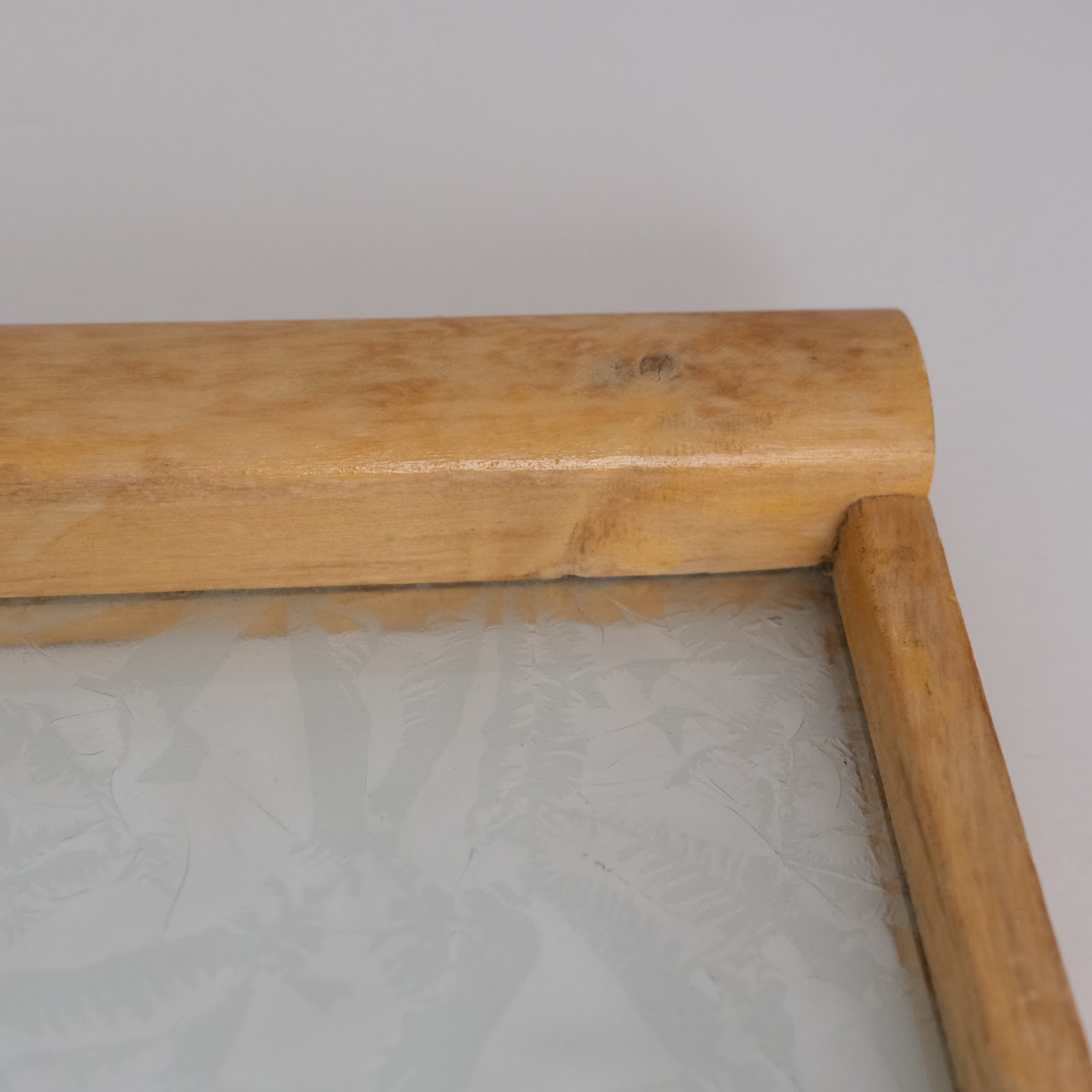 木枠に窓の凍った結晶のような模様のガラス板の組み合わせです。